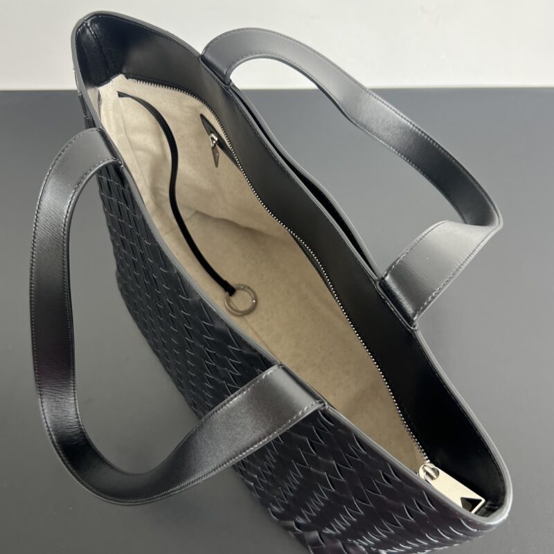 Details: Hand – woven intrecciato leather with minimalist hardware. The interior keeps essentials organized.
