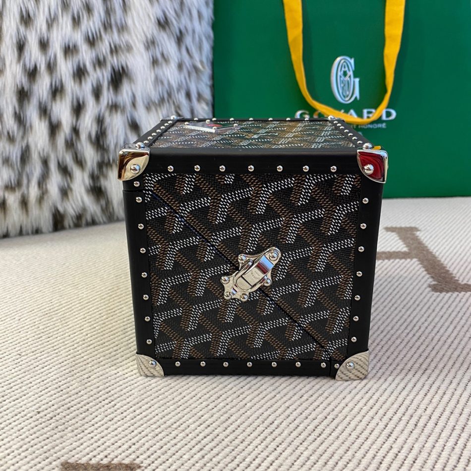 Collectible Goyard DE trunk replica — cube-shaped Goyardine storage trunk with heritage design.