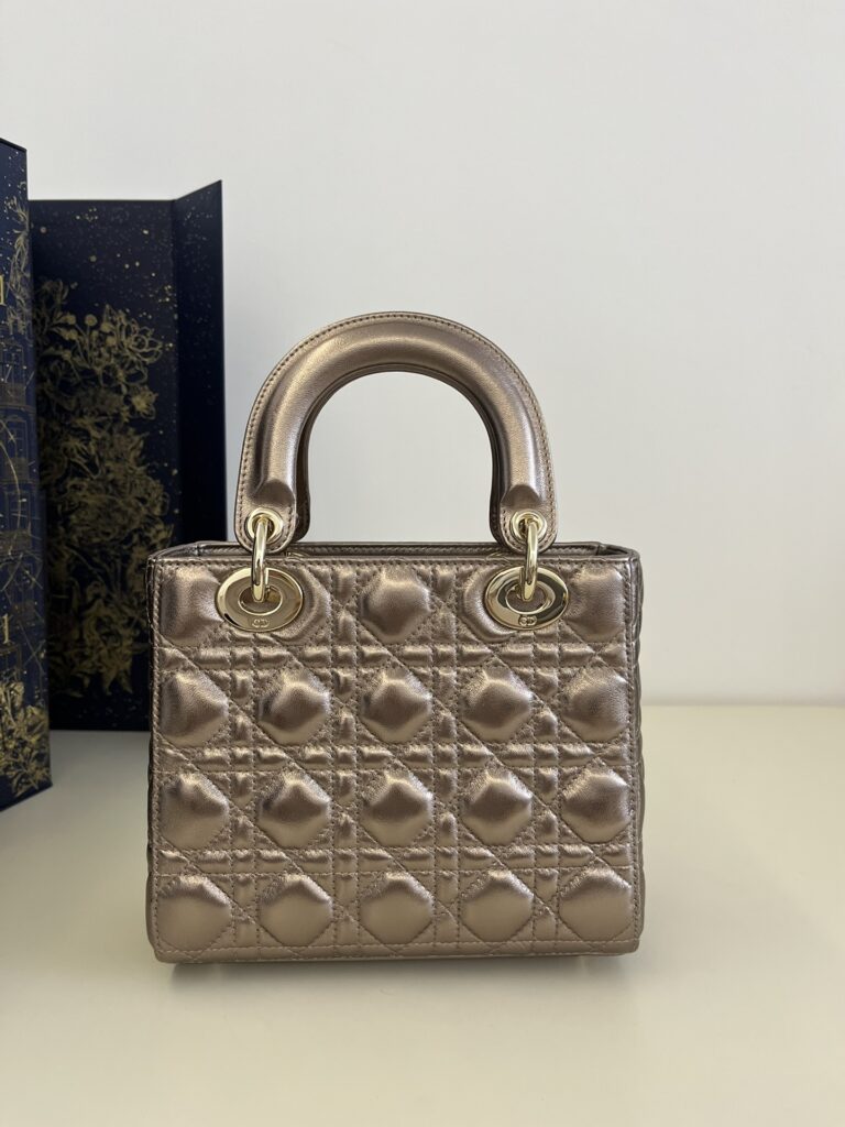 This Dior Lady Dior Golden Metallic Abc is designed as a daily crossbody/shoulder staple with balanced structure and premium materials. It blends recognizable design codes with practical storage to suit commute, city errands and travel.