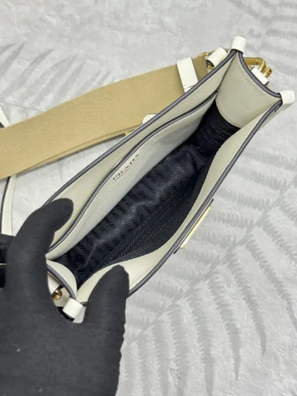 This Prada Prada Saffiano Small Tote White in Saffiano is crafted for a faithful luxury look with accurate proportions and refined finishing. It blends recognizable design codes with practical storage to suit commute, city errands and travel.